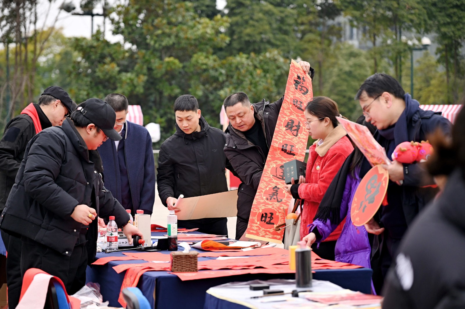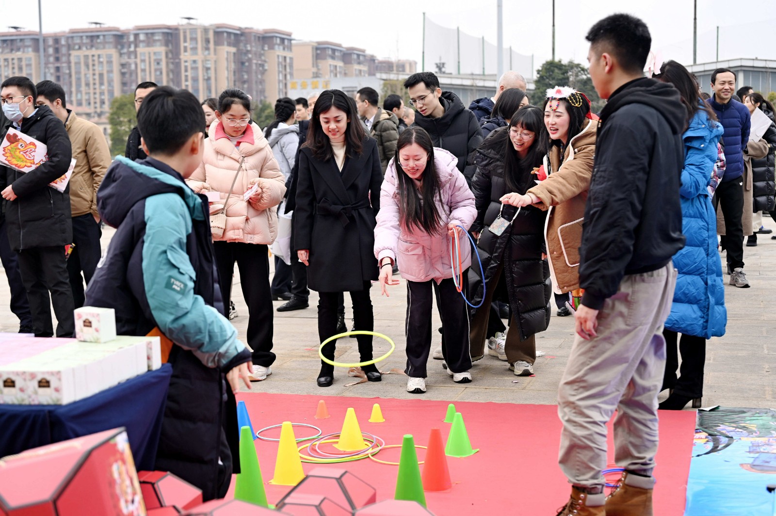 趣味游园吸引了众多干部职工互动体验,现场人头攒动,热闹祥和。写春联、做龙灯、品美食、玩游戏,多区域打卡,赢取奖品,或是约三五同事,取几颗瓜果杂粮,挂一壶浓醇红茶围炉欢谈,欢声笑语不绝于耳。