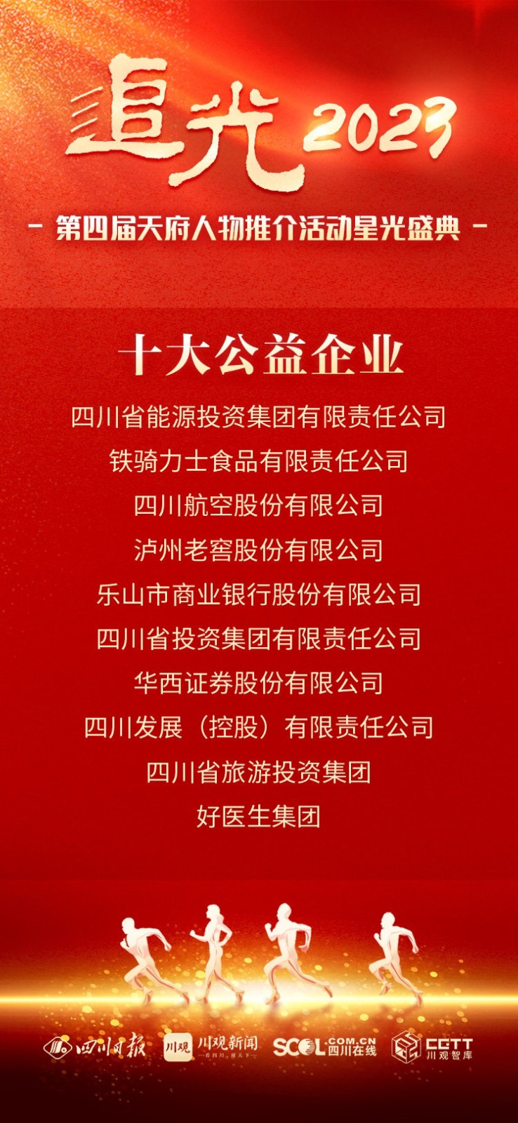 3月29日下午,在乐山举行的追光2023·第四届天府人物推介活动星光盛典上,川投集团获评“四川十大公益企业”。集团领导朱莉代表川投集团参加典礼。