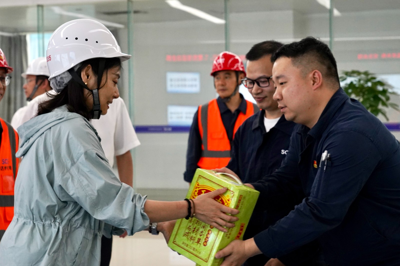检查期间,朱莉与一线职工亲切交谈,了解工作生活情况,并送上清凉防暑慰问品,叮嘱大家一定要注意高温天气期间的防暑降温和安全环保工作,鼓励大家继续为川投集团做大做优做强清洁能源事业添砖加瓦。