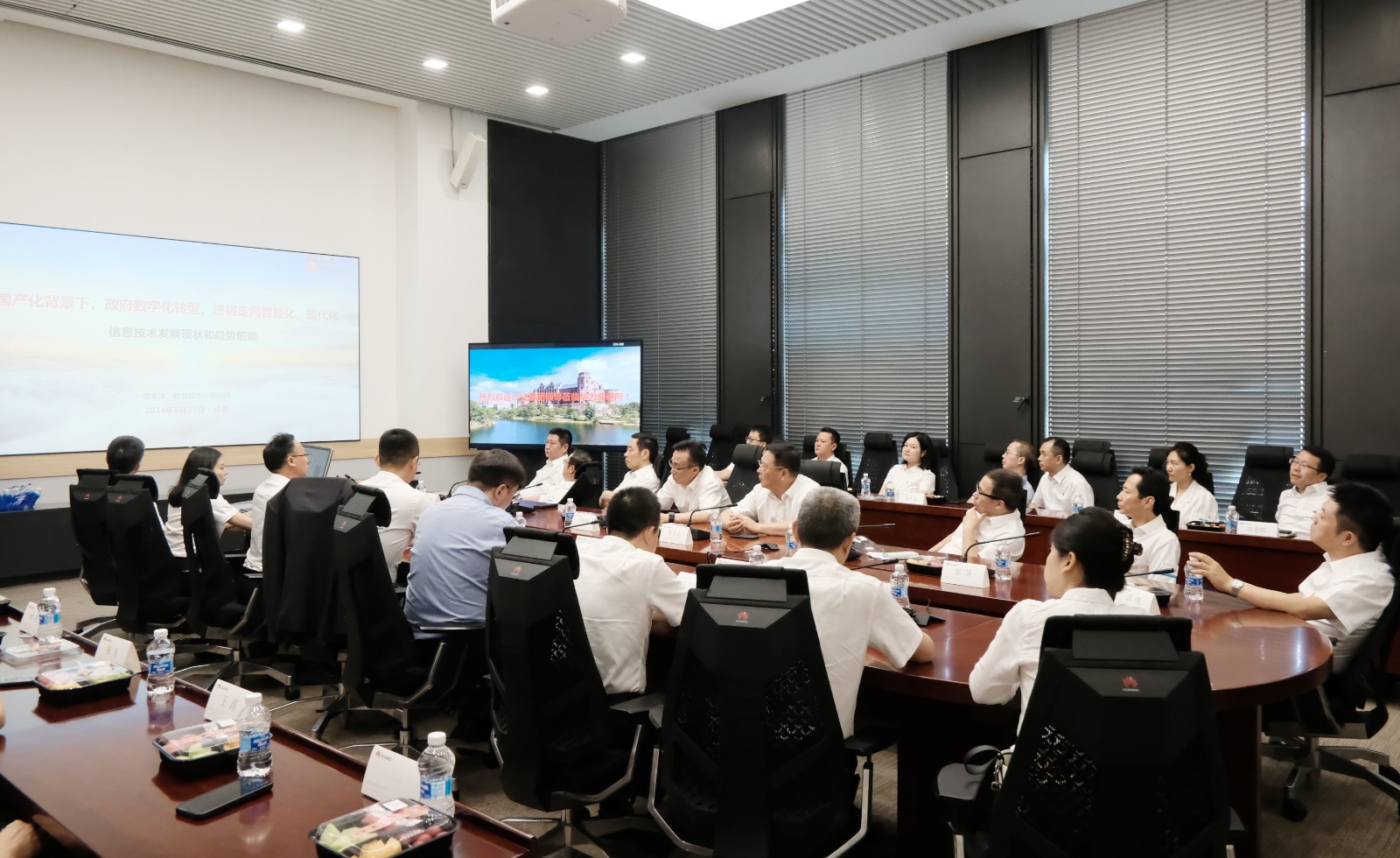集团公司领导、各部门负责人以及集团所属电子信息板块公司主要负责人参加研学。华为川藏政企成都业务总经理南国辉、副总经理胡壹城和华为政务一网通军团数字政府智慧城市总架构师谭睿捷陪同研学并参加交流。