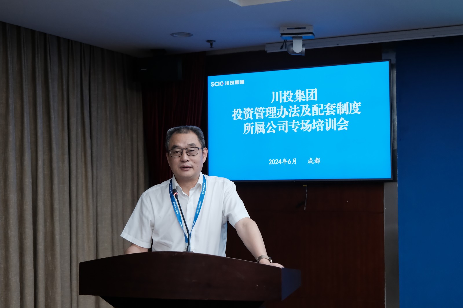 田传平表示,作为大型国有投资集团,投资发展一直都是川投集团的主要工作任务,集团党委高度重视,要求做好投资制度的宣贯工作,本次培训是落实党委部署的具体举措。他强调,所属公司都应高度重视,提出4点要求:一是珍惜此次培训机会,本次修订后的投资制度较上一版本有较大变化,特别是须报送省国资委审批的标准、流程等相关规定,战略投资部将为大家逐一讲解,请大家认真学习;二是抓好制度贯彻落实,所属公司要全层级传达会议精神,组织开展投资制度宣贯工作,投资职能部门要与经营、法务、财务、审计等职能部门加强协同,依法依规推进投资项目的落地实施;三是做好后半篇文章,新修订的制度只有在执行中才能真正熟悉掌握,各所属公司在投资实践中,可就制度的具体操作细节与战略投资部充分沟通,战略投资部将梳理各所属公司反馈意见,通过制度解释等形式,做好制度动态优化;四是及时修订各所属公司的投资管理制度,各所属公司可根据本办法,结合经营实际,制定本公司投资制度,经公司董事会审议通过后,报战略投资部备案,其中,“1+3”产业投资平台公司必须修订投资管理制度,PPP公司等不涉及投资事项的公司可以不修订投资制度,但需要加强制度的学习。