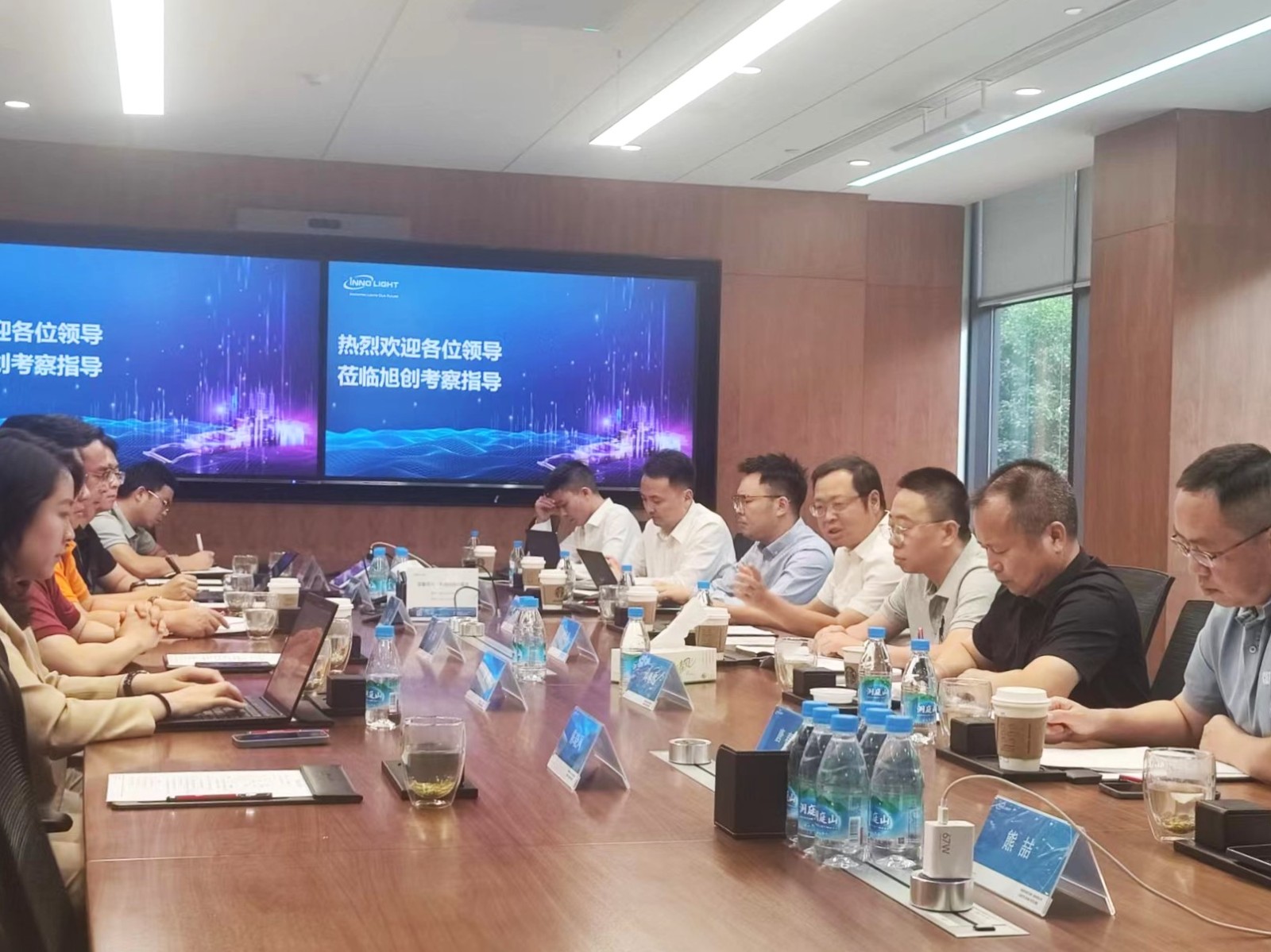 座谈会上,舒勇介绍了川投集团“1+3”产业布局整体情况,特别是能源产业、电子信息产业和先进材料与战略性新兴产业发展现状。他指出,希望双方加强交流沟通,在能源、电子信息、先进材料等多个领域寻找合作机会,共同助推行业高质量发展。旭创公司负责人对舒勇、肖长青一行表示热烈欢迎,并介绍了公司光模块产品的经营状况和未来产品布局。他指出,川投集团资产质量优、产业基础强,在能源、电子信息及先进材料领域拥有绝对优势,希望双方加强沟通,共谋发展。