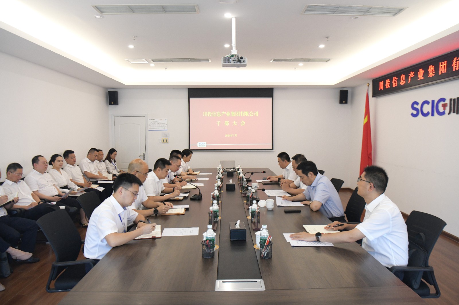 7月8日,川投信产召开干部大会。川投集团党委副书记、副董事长、总经理李文志出席会议并讲话,川投集团党委副书记、董事邓凯出席会议并宣读任职文件。川投集团副总经理,川投信产党委书记、董事长肖长青主持会议。