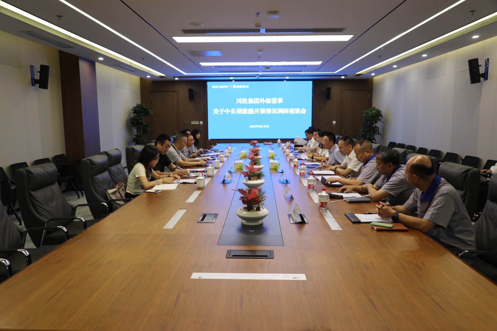 座谈会上,川投集团副总经理,川投信产党委书记、董事长,宏明电子董事长肖长青对外部董事一行的到来表示欢迎,并对川投信产的生产经营、产业发展方向做了总体介绍。各所属公司负责人介绍了各自企业情况及中长期激励推进情况。