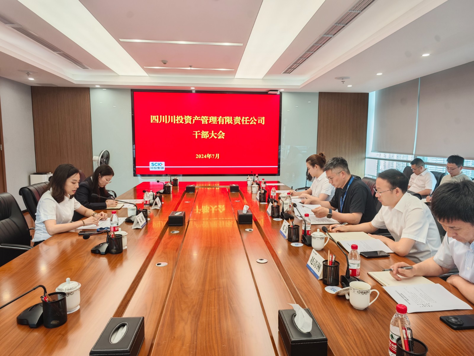 7月8日下午,川投资产召开干部大会,川投集团党委委员、职工董事、工会主席朱莉出席会议并讲话。川投资产党支部书记、董事长万易明主持会议。