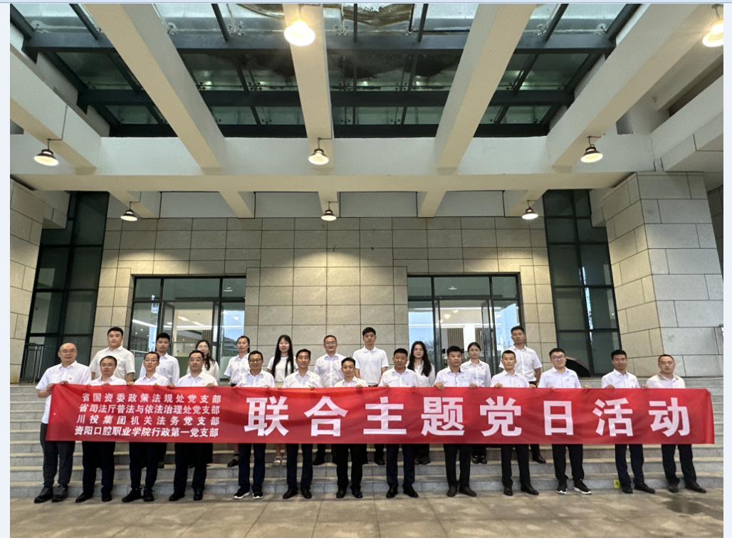 7月17日下午,省国资委政策法规处、省司法厅普治处赴资阳口腔职业学院进行法治宣传教育基地调研督导,并开展联合党支部主题党日活动。集团公司法务风控部、资阳口院相关负责人陪同。