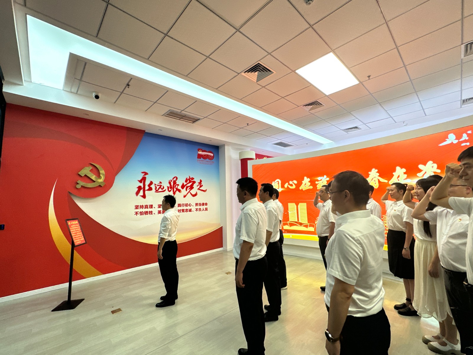 省国资委政策法规处处长邓爱平、省司法厅普治处处长边疆,集团公司总法律顾问、法务风控部部长杨帆,资阳口院党委书记、理事长张中伟及相关30余人参加调研及主题党日活动。