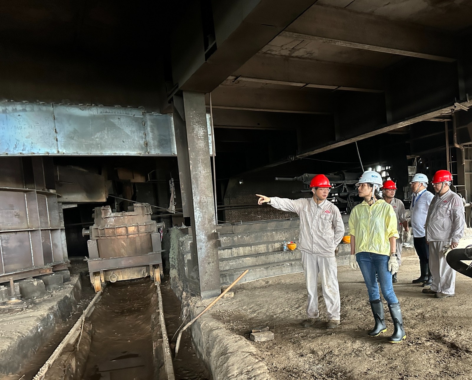 抵达川投峨铁,朱莉一行即冒雨深入二厂区西南北三面围墙倒塌处、二厂冶炼厂房、原料棚、二总降及水泵站等地查看灾情,详细了解了公司“7.18”受灾面积、受损程度等具体情况,听取了川投峨铁公司抢险复产工作规划。随后,朱莉代表集团党委看望了在抢险复产一线的干部职工,对他们前期工作的有力有序开展给予肯定,对他们的辛苦付出表示慰问和感谢,并送上了慰问物资。