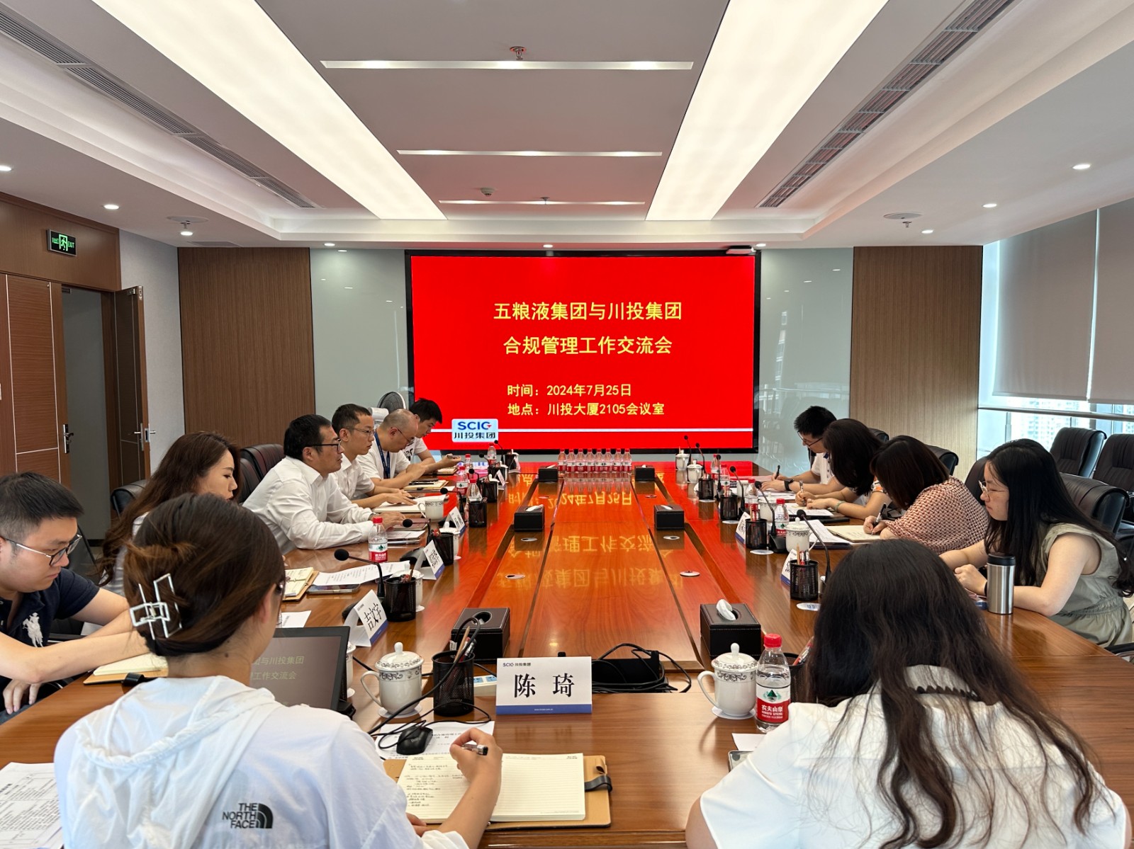 7月25日下午,四川省宜宾五粮液集团有限公司(以下简称“五粮液集团”)战略发展部负责人及相关人员到访川投集团,双方就企业合规管理工作展开交流。集团公司总法律顾问、法务风控部部长杨帆主持交流会议。