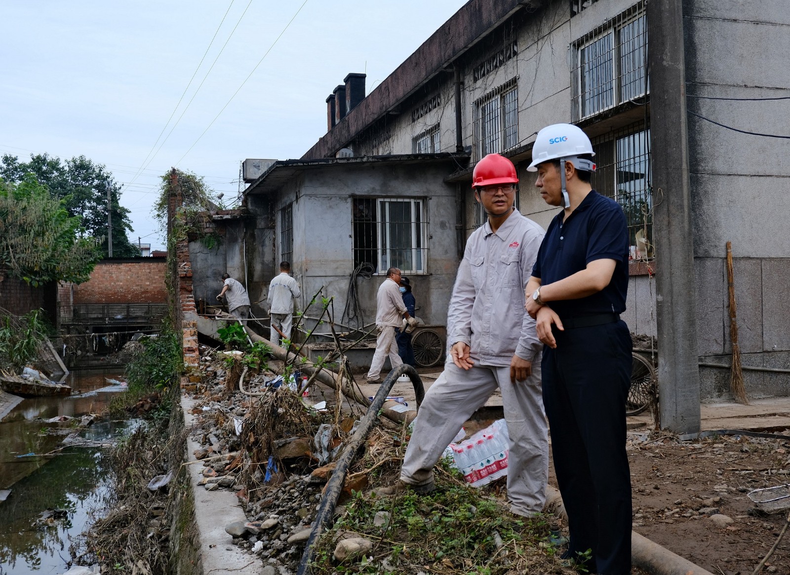 邓凯深入节材二厂,实地察看了受灾情况,转达了集团和主要领导对峨铁的关心和慰问,听取了设备抢修和生产恢复进度的报告,调研了公司转型升级和技改纾困工作情况。看到洪灾后恢复整洁的办公环境和井然有序的生产秩序,邓凯充分肯定峨铁干部职工在这场“大考”中表现出来的“闻令而动、向险而行,不顾辛劳、连续作战”的良好精神面貌,高度赞扬峨铁干部职工在艰难条件下全力以赴执行排涝任务,统筹资源回收利旧,日夜奋战实现复工复产的良好作风。
