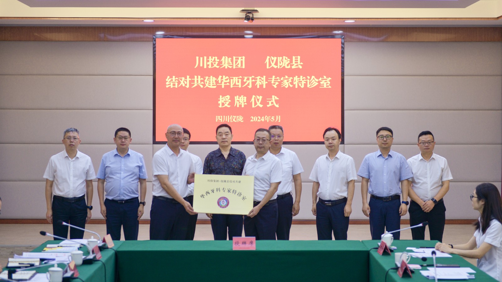 5月24日,川投集团与仪陇县结对共建的仪陇县总医院华西牙科专家特诊室授牌仪式在仪陇举行。南充市政协副主席、仪陇县委书记郭宗海,川投集团党委副书记、董事邓凯,党委宣传部部长何金辉等领导出席仪式。仪陇县总医院党委书记张勇和华西牙科党委书记、董事长、总经理刘凌云现场进行授牌。