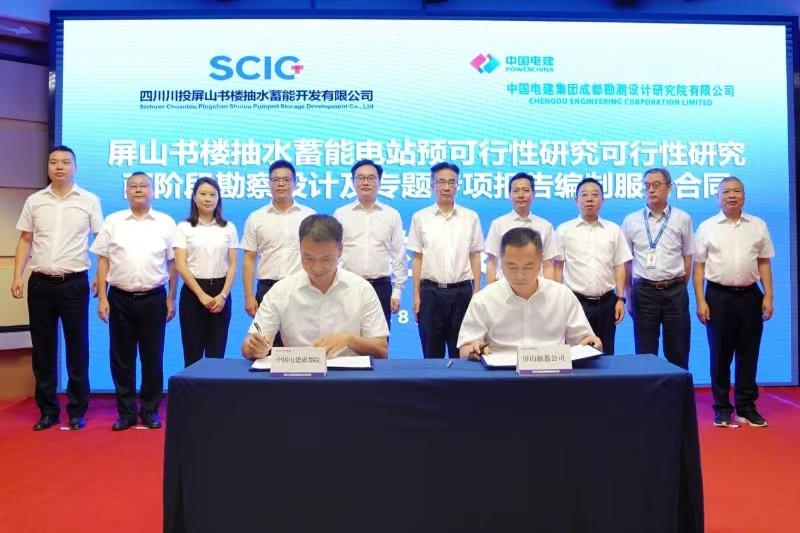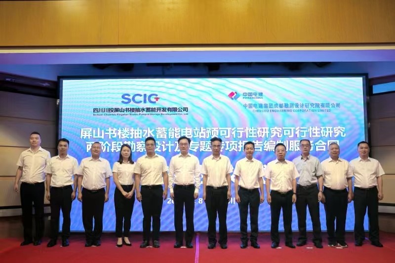 8月26日,川投集团所属四川川投屏山书楼抽水蓄能开发有限公司(以下简称“川投屏山抽蓄公司”)与中国电建集团成都勘测设计研究院有限公司(以下简称“中国电建成都院”)在成都举行《屏山书楼抽水蓄能电站预可行性研究、可行性研究两阶段勘察设计及专题专项报告编制服务合同》签约仪式。川投集团党委书记、董事长吴晓曦,中国电建成都院党委书记、董事长何彦锋出席并见证签约;川投集团副总经理张昊,中国电建成都院党委委员、副总经理赵晓峰出席并致辞;川投集团副总经理肖长青出席并主持仪式。