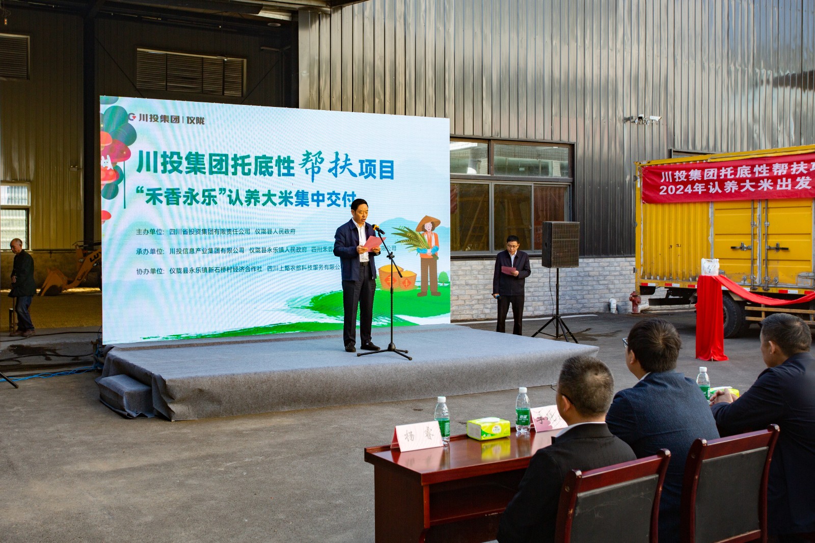 10月22日,由川投集团党委、中共仪陇县委联合主办的“禾香永乐”水稻认养项目交付仪式在仪陇县永乐镇举行。当日上午,项目第一期产出的5万余斤大米交付装车,启程发往各认养单位。川投集团党委副书记、董事邓凯,中共仪陇县委常委、县人民政府常务副县长严清权出席交付仪式。
