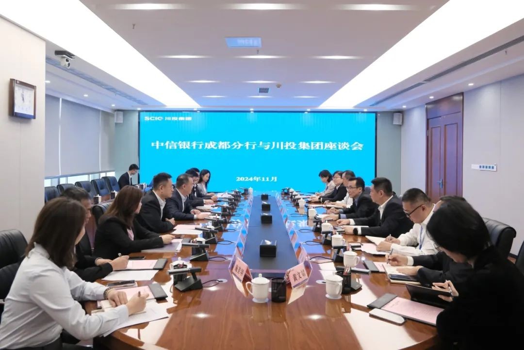 11月7日,中信银行成都分行党委书记、行长李庆来一行到访川投集团,开展工作座谈。集团公司党委书记、董事长吴晓曦出席并主持座谈。