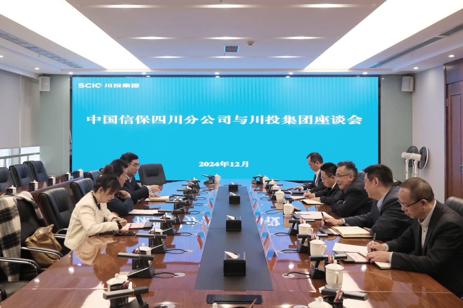 12月12日,中国出口信用保险公司四川省分公司(以下简称“中国信保四川分公司”)党委书记、总经理张秦带队到访川投集团,双方举行工作座谈。集团公司党委书记、董事长吴晓曦出席并主持。集团公司财务总监黄劲,副总经理肖长青参加。
