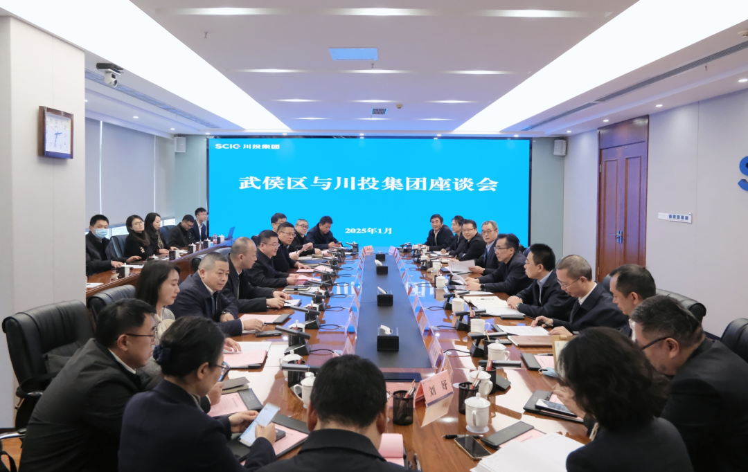 武侯区委常委、常务副区长刘伟,副区长黄谷,工业园区管委会、武侯区经科信局、区国资监管局、华西医美健康城管委会、玉林街道,武侯国投、武侯发展、武侯资本相关负责同志;集团总经理助理、战略投资部部长田传平以及办公室、资金财务部、经营管理部、资本运营部,川投大健康、川投燃电、川投能源相关负责同志参加座谈。