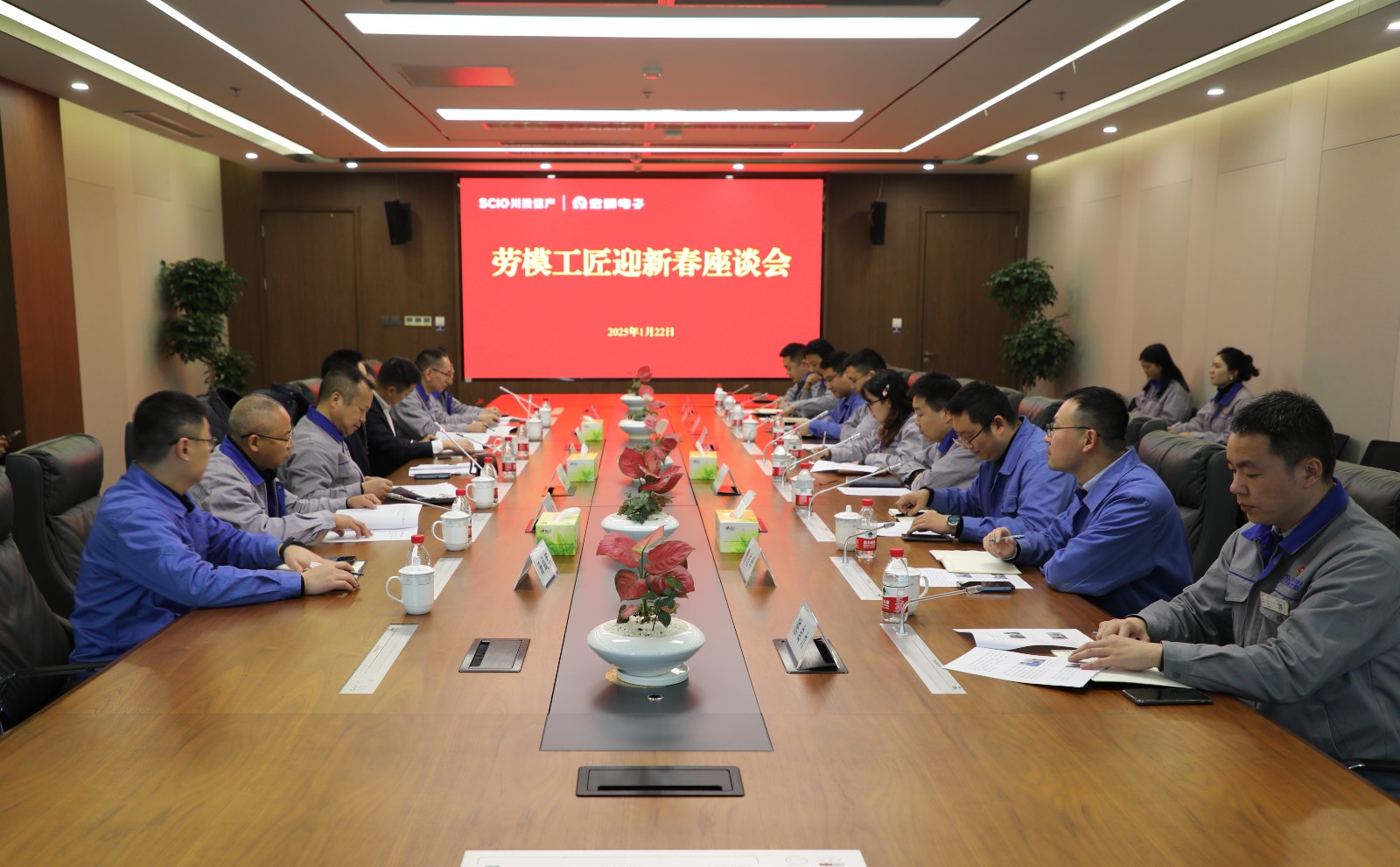 1月22日,集团副总经理肖长青赴宏明电子参加劳模工匠迎新春座谈会。川投信产党委副书记、总经理梁涛,宏明电子主要负责人参加。