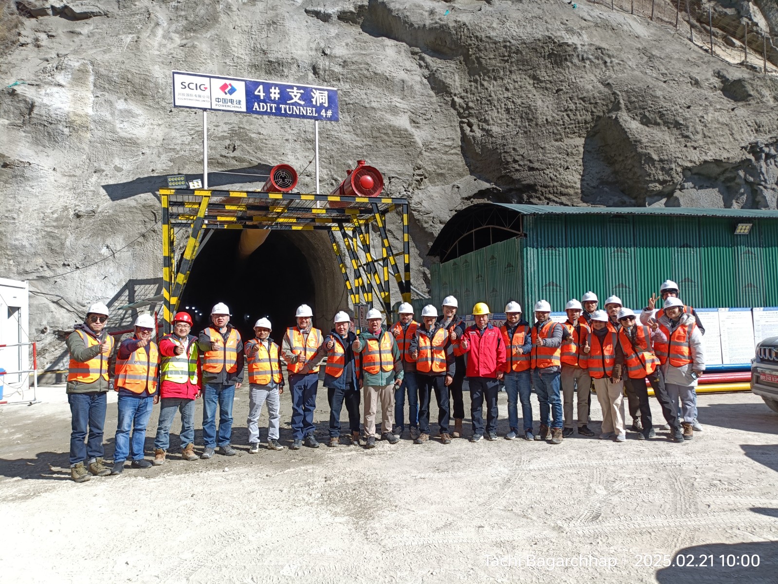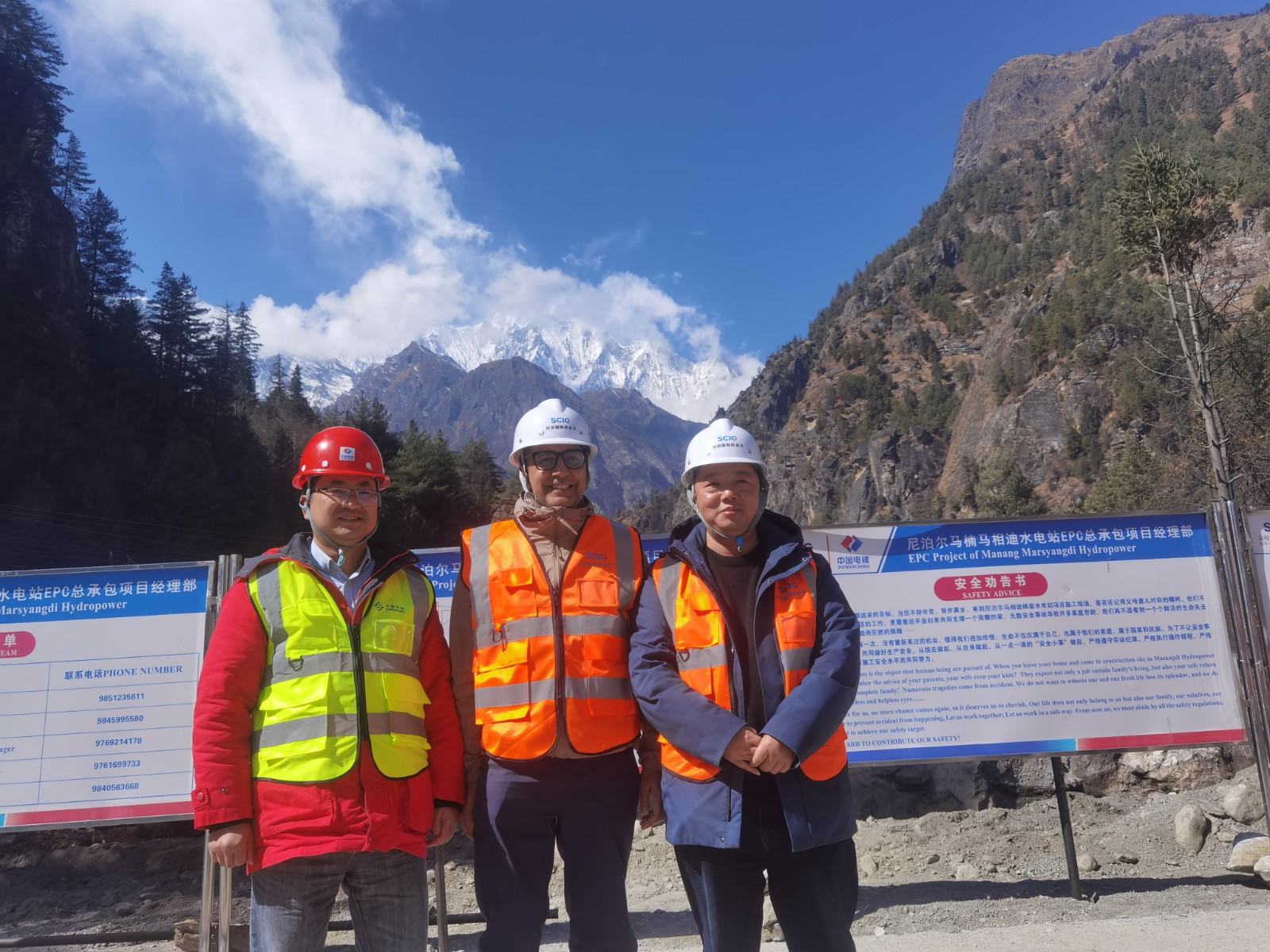 2025年2月20日至23日,由尼泊尔能源、水资源与灌溉部联合秘书萨加尔·拉杰·高塔姆等政府当局、党派人士、地方官员及社区代表共30人组成的代表团赴尼泊尔马楠马相迪水电站项目(简称:马1项目)现场考察调研,并出席马1项目开发协议项下专业技术报告利益相关方披露会。萨加尔一行深入项目施工现场,实地察看了首部枢纽、引水隧洞支洞、厂房区域建设情况,对项目截至目前的开发建设工作推进情况表示充分肯定。