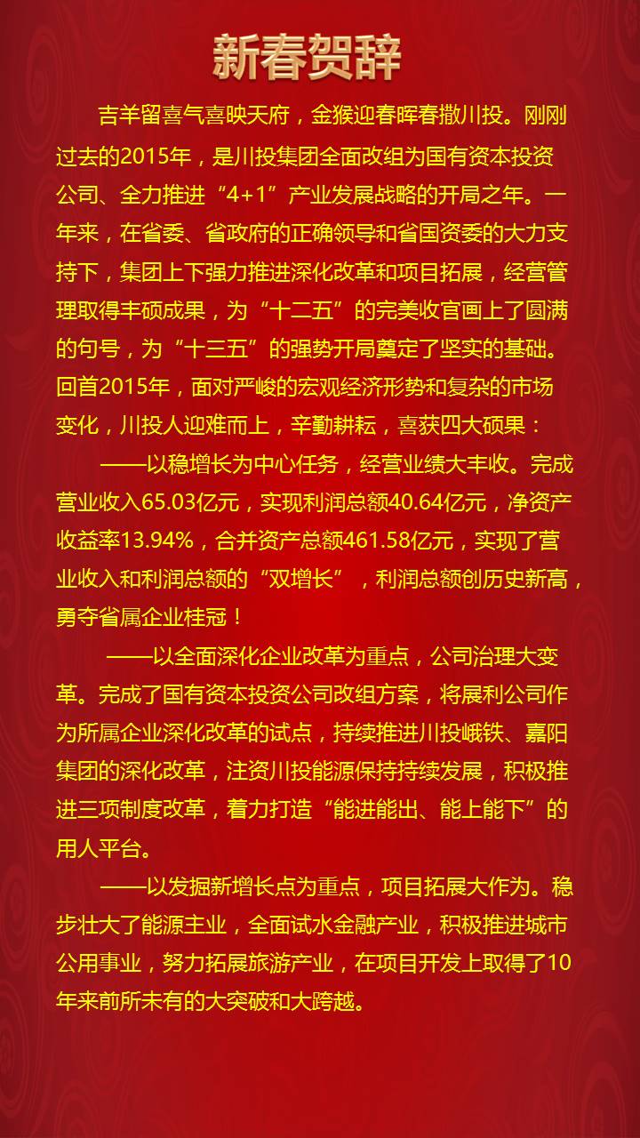 开云官方手机登录入口(简称川投集团)是四川省人民政府授权的国有资产经营主体、重点建设项目的融资主体和投资主体之一,省国资委管理的国有独资公司。了解更多>