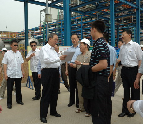 培炎副总理饶有兴致地参观了项目中央控制室,亲切慰问了战斗在一线的广大职工,在听取川投集团公司总经理郭勇和新光硅业公司总经理陈绍章介绍新光硅业承建的年产1000吨多晶硅高技术产业化项目建设情况、工艺流程、发展规划等相关情况汇报后,培炎副总理强调,对这样的高技术产业化项目要给予支持,希望公司认真落实科学发展观,为我国的多晶硅产业做出更大的贡献。