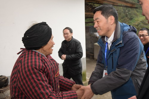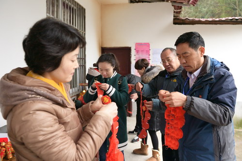 随后,伴着绵绵冬雨,慰问组一行逐户上门慰问,送上了象征吉祥与祝福的“红包”、年贺和棉衣棉被等物资。各支部党员代表与结对的“亲戚”一起贴春联、粘窗花、挂灯笼、布彩灯、悬挂中国结,用他们带来的喜庆饰品装扮节日氛围,每个“亲戚”家五彩缤纷、年味十足。一张张党员代表与“亲戚”的“全家福”合照,闪耀着一个个欢乐与亲情融合的美好瞬间。各支部还开展了为困难群众做好事活动,他们有的帮“亲戚”家种土豆,有的和“亲人”一起通沟渠,有的为留守老人打扫房间,困难群众深受感动,欢喜之情溢于言表,85岁高龄的罗永成大爷深有感触地说:“没有共产党就没有我今天的好生活。共产党好!社会主义好!”
