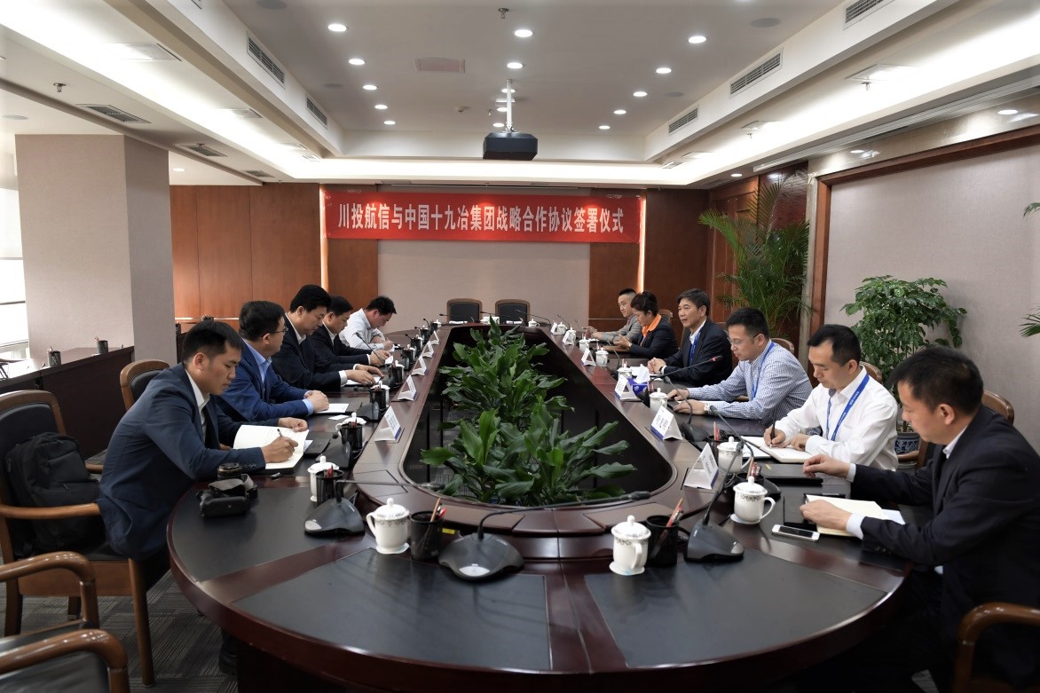 2017年4月17日,四川省川投航信股权投资基金管理有限公司(以下简称“川投航信”)与中国十九冶集团有限公司(以下简称“十九冶”)举行了战略合作协议签约仪式。集团公司党委副书记、副董事长、总经理、总会计师郑世红,十九冶董事长田野、总会计师刘国共同见证签约仪式。集团公司副总经理、川投航信董事长薛东兵主持签约仪式。川投航信总经理高明与十九冶总经理欧成华分别代表川投航信与十九冶签订战略合作协议。集团公司财务部副经理叶光明、川投航信副总经理黄楷、十九冶投融资部部长白鑫等出席仪式。
