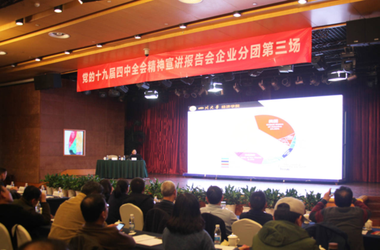 11月29日下午,省委宣讲团企业分团党的十九届四中全会精神宣讲第三场报告会走进川投国网公司会议室。1家中央在川企业和8家省属国有企业共计220人共聚一堂,认真聆听省委宣讲团成员、四川大学经济学院教授蒋和胜作宣讲报告。