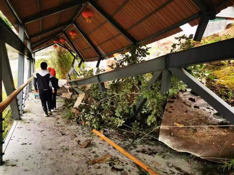 公司上下在地震后迅速行动起来,一边紧急查看项目建设现场,一边紧急寻找联系方式向田湾河公司上报情况。借助田湾河营地现场的应急通讯设备,旅游公司收到了公司党委的指示:确保员工人身安全的情况下,抓紧组织力量对接地方政府,马上开展抢险自救。