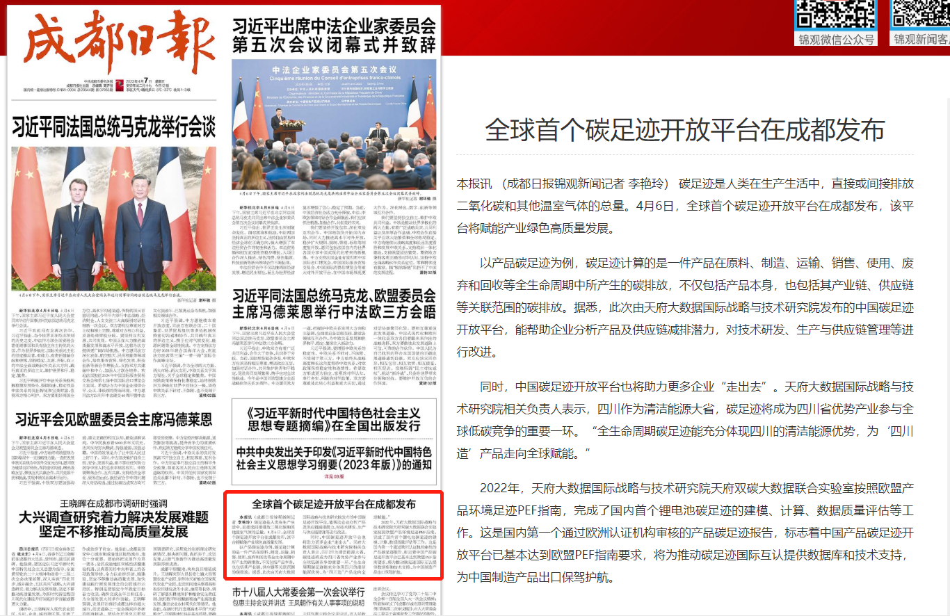 上一条:【川观新闻】全球首个碳足迹开放平台在成都发布