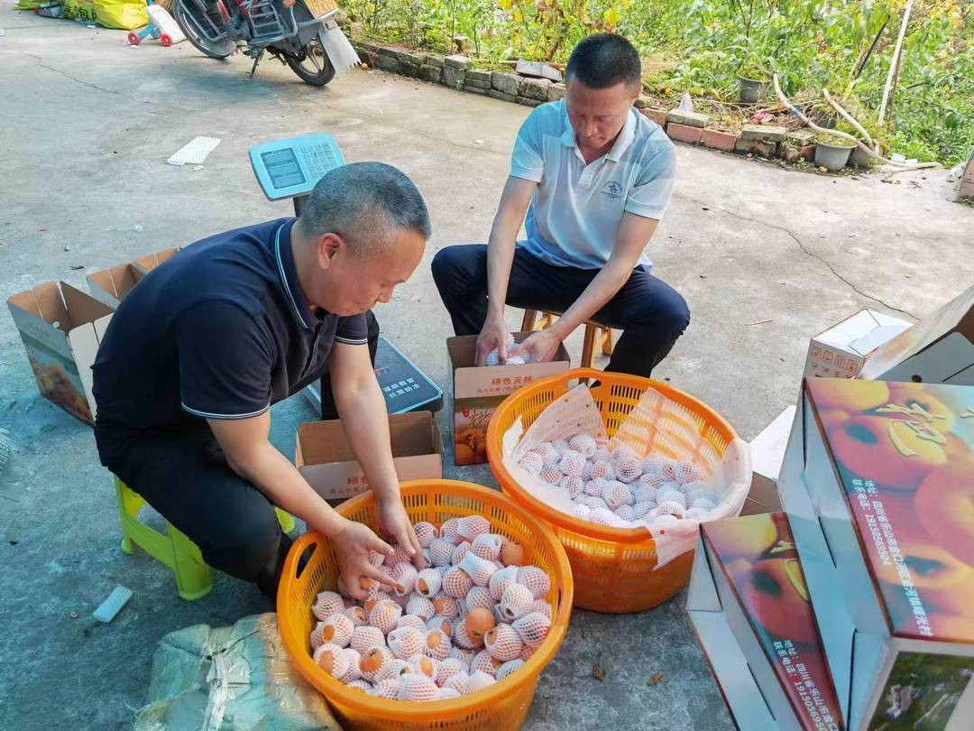 陈联兵(右)、赵维强为果农分拣枇杷。