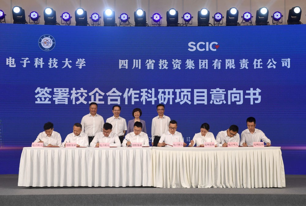 签约仪式上,双方揭牌设立“电子科大——川投集团关键器件中试基地”,川投信产智胜集成、宏明宏科与电子科技大学相关项目组签署4个“校企合作科研项目意向书”,其中包括高端核心元器件的关键技术攻关,“智改数转”项目试点示范,基于能源、文旅领域的人工智能大模型研发和应用等。