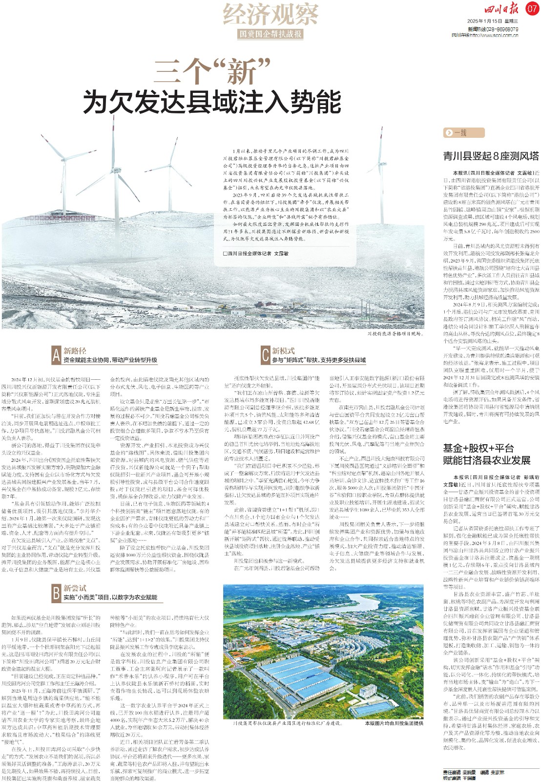 托底性帮扶欠发达县域,川投集团的“能量”还向仪陇之外辐射。