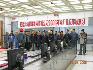 2006年3月14日,为了保证机组的安全稳定供电,进一步提高运行各值各岗位业务水平,公司举行了两台新建机组投运以来的首次反事故演习,公司领导及相关部门参加。由运行一值担任演习值,运行四值担任监护值。事故情况为:#3机由于发电机断水保护动作,机组跳闸。5秒钟后#2启备变有载调压重瓦斯信号发出。#3机厂用电失电,柴油发电机未带保安段运行。