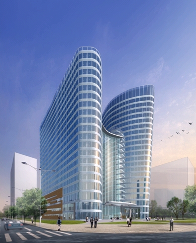 川投调度中心项目位于成都市高新区天府大道东侧,总建筑面积9.5万平方米,高度98.2米,由南北两座独立塔楼相连而成,北座塔楼为21层,南座塔楼为23层,其中含裙房4层,地下室为3层可设停车位545辆。该大楼采用钢结构,混凝土楼板,外墙均为玻璃幕墙,裙楼局部采用金属百页,将按照甲级写字楼的设计标准修建完成,预计总投资概算为4.7亿元,计划于2008年竣工。项目建成后将成为集团公司科研、生产、调度、指挥和控制中心。