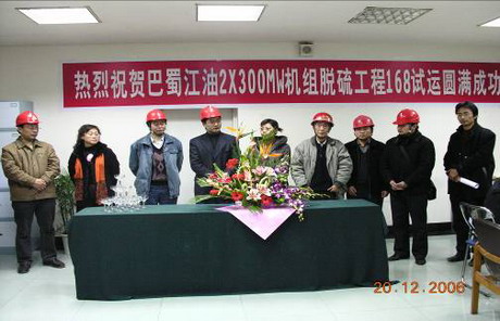2006年12月20日23时30分,巴蜀江油2×300MW机组脱硫集中控制室内,川投集团副总经理、巴蜀公司董事长兼总经理、巴蜀江油燃电公司董事长蒋国俊兴奋地大声宣布:“2×300MW机组脱硫工程168小时试运行圆满成功!”顿时,控制室内响起掌声一片,人人脸上洋溢着喜悦,欢歌笑语连绵不断,所有在场的人员击掌相庆,共同祝贺300MW机组脱硫工程顺利通过168小时试运行,四川省及绵阳江油市环保部门领导共同见证了这一时刻。至此,江油扩建工程环保设施全部竣工投运,并提前11天完成国家环保总局下达的脱硫限期整改任务,数日来压在巴蜀江油燃电公司全体员工心头的一块石头终于落在地下。