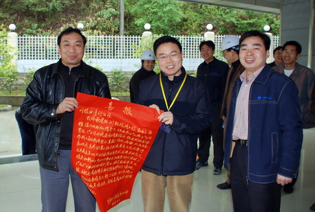 4月9日,在一阵鞭炮声中,中铁十六局金窝项目部经理张天伦将金窝水电站JC/I标1#、2#支洞间主洞提前贯通的喜报送到公司总工程师唐剑虹,公司副总工程师、金窝项目管理部经理何林手中。