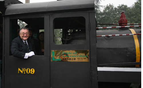 戴维先生满面容光,兴高采烈地接受了来自异国他乡的厚礼——“莱斯特郡之骄”牌匾和“嘉阳小火车荣誉司机”证书。戴维先生激动地说,英国莱斯特郡与四川有20余年的友好交往,去年莱斯特郡的查伍与乐山市结为了友好城市。在乐山市和嘉阳集团的高度重视下,嘉阳小火车得到了很好的开发和宣传,在英国,很多人都知道嘉阳小火车,相信随着嘉阳小火车的进一步开发,这里的人民会得到更多的实惠,日子会越过越好。回到英国后,我会进一步向我们的市民宣传小火车,让更多的游客来这里体验小火车。