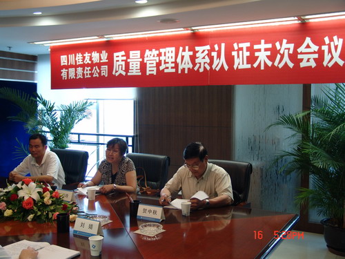 佳友物业公司自2006年导入ISO质量管理体系工作以来,全体员工全力投入贯标工作,严格按质量体系文件要求,填写和记录各项受控表格,留下管理痕迹。贯标工作中,公司分别组织召开了内审和管理评审工作会议,并对本次评审工作作了详细充分准备,审核前,公司组织相关人员并邀请咨询师,对受检部门行政人事部、品质发展部、安工部及巴蜀管理处、南府管理处分别作了预检,对预检工作中存在的问题,要求各部门、管理处安排人员限期整改。全体员工的通力配合,使为期两天的审核工作进行得非常顺利,并如期完成。