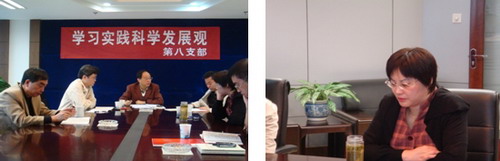 首先,支部组织委员、三产部副经理薛波带领大家认真研习了《科学发展观重要论述摘编》,通过学习,同志们进一步统一了思想和认识。学习完后,支部书记、房地产公司总经理王建同志组织大家牢记本支部在此次学习实践科学发展观活动中“解放思想,科学管理,以人为本,稳健发展”的主题,紧紧围绕“当前和今后房地产公司如何发展”这一问题进行分析、讨论,确保每一次学习都对工作有帮助、有促进。