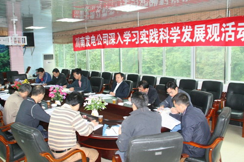 10月18日,川南发电公司利用周末时间,组织公司领导、党支部书记、中层及以上管理人员召开深入学习实践科学发展观活动研讨会,学习科学发展观理论,研讨部署在公司全面、深入开展学习实践活动。