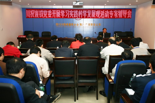 10月27日下午,川投峨铁公司在十楼阶梯会议室举办了开展深入学习实践科学发展观活动专家辅导报告会。报告会邀请乐山党校副校长、经济学教授刘国春辅导讲解,公司领导穆婷云、彭少奇 、唐华应、史江涛、余华伟、刘琼华以及全体中层干部和部分党小组长近120余人参加了会议。