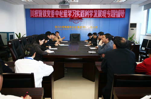 10月29日下午,川投峨铁公司党委在九楼会议室召开了开展深入学习实践科学发展观活动专题辅导会。公司学习实践活动领导小组副组长、党委副书记彭少奇主持会议并作了题为《唱响科学发展主旋律,全面推进公司持续稳定健康发展》的专题辅导。公司领导余华伟、李易亮、刘琼华以及中心组成员和各党支部书记共31人参加了专题辅导会。