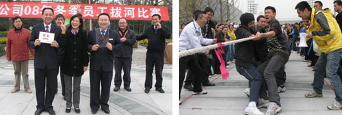 为活跃员工文化生活,营造公司团结向上的和谐氛围,12月5日下午,川投国际网球中心在公司大门口广场举办了“川投国网公司08年员工冬季拔河比赛”。