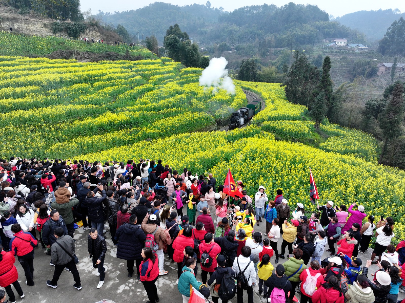 除了传统的油菜花季,川投峨旅公司还将在4月上旬至5月上旬推出粉色杜鹃花为特色的第二花季,在7月中旬至10月上旬推出以紫色千日红为特色的第三花季,力争实现将“嘉阳小火车”升级成为适合全年出游的文旅项目,景区曝光量与品牌影响力亦将迈上新台阶。
