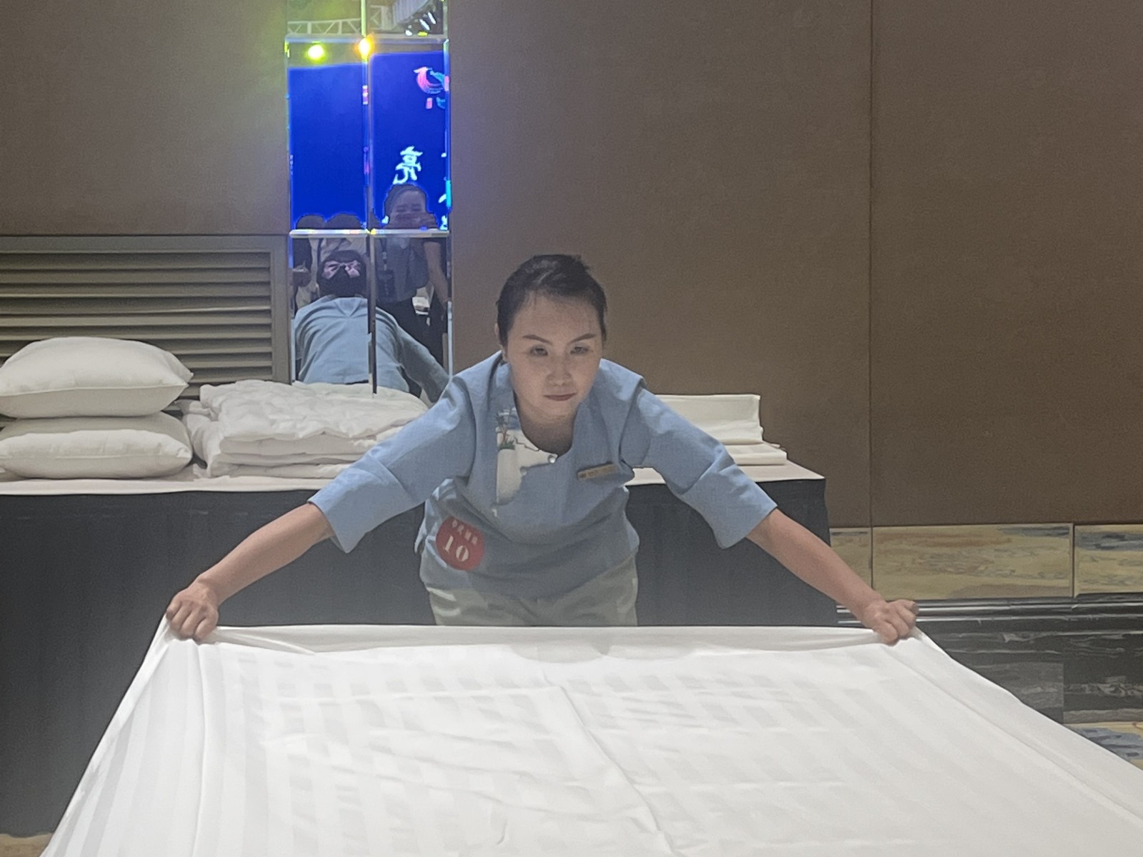 红格温泉假日酒店颜富会获攀枝花市第七届“百岗万人”职工职业技能大赛暨攀枝花市首届酒店服务行业技能大赛优秀个人奖、中式铺床三等奖
