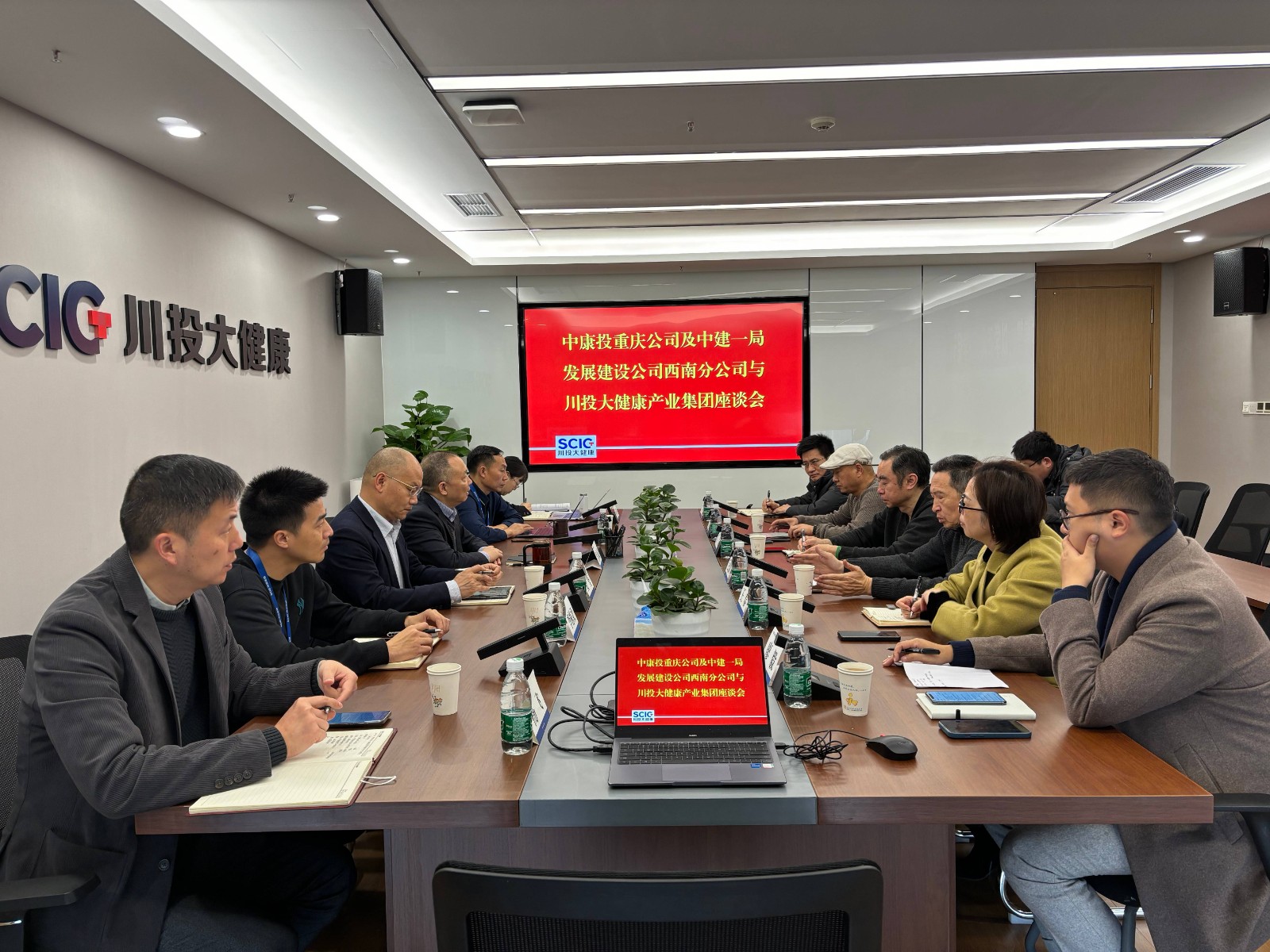 3月5日,中康养健康产业投资有限公司重庆分公司(筹)负责人葛伟、总经理助理顾富兵,中建一局发展建设公司西南分公司王春、廖毅一行到访川投大健康产业集团。川投大健康产业集团党委书记、董事长、总经理鲁洪斌出席并主持会议。