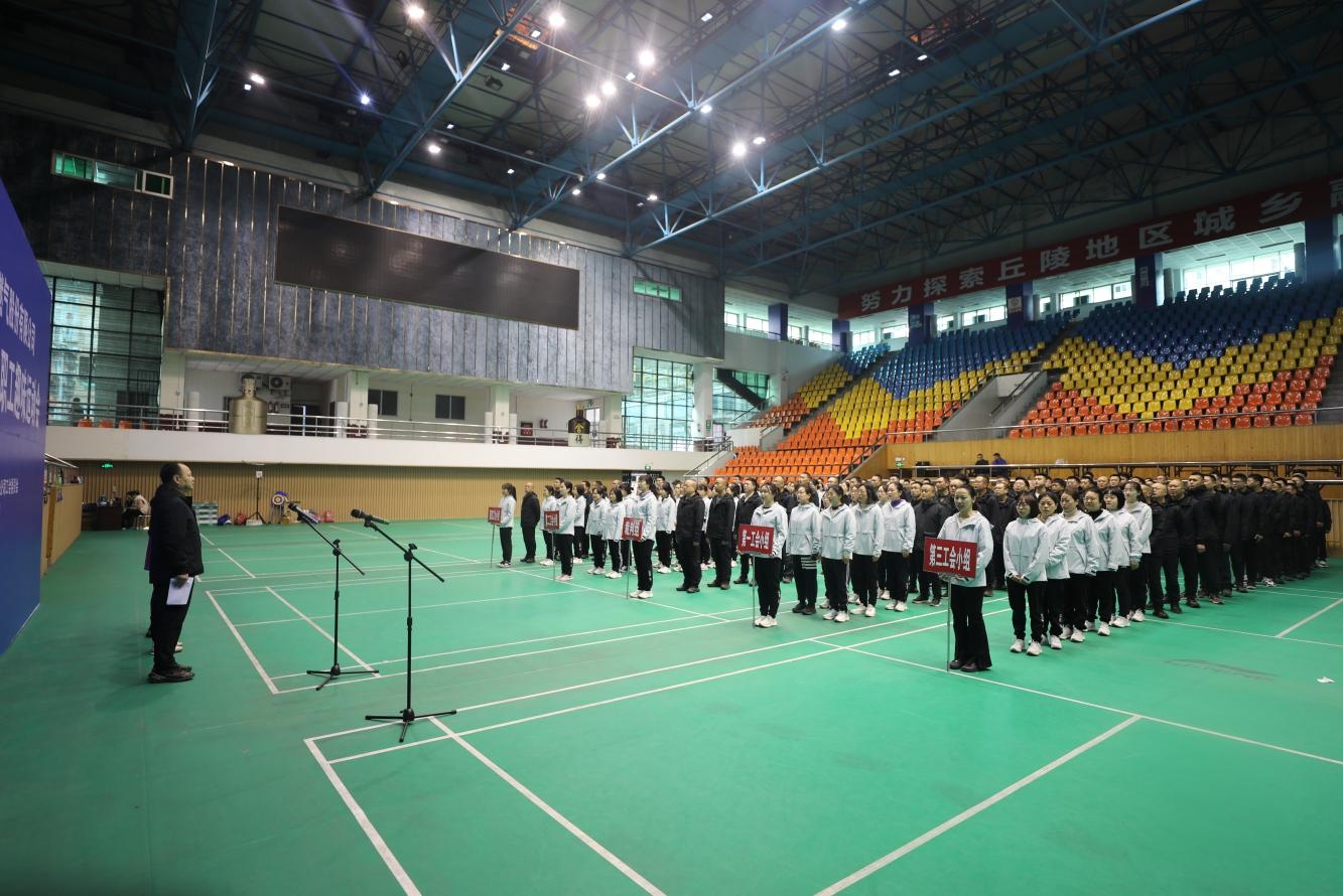 上午8:30分,伴随着激昂的《运动员进行曲》,裁判组、4个工会小组入场,全员肃立齐唱国歌,运动员、裁判员代表分别宣誓。上午8:50分,包婷婷宣布运动会开幕。