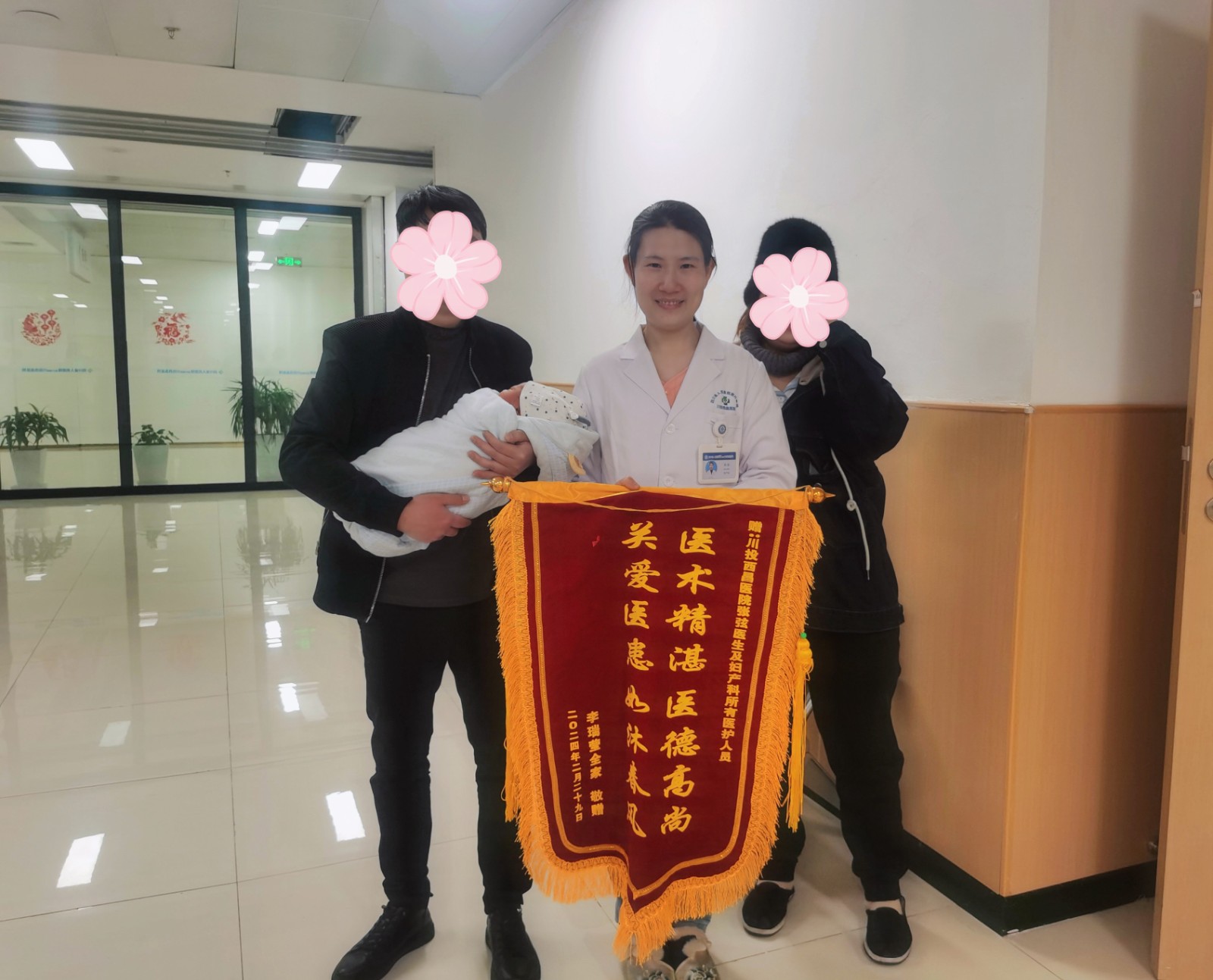 李女士(化名)诞下一名宝宝,母子平安,3月顺利出院,并对主刀医生及医护人员表示感谢。