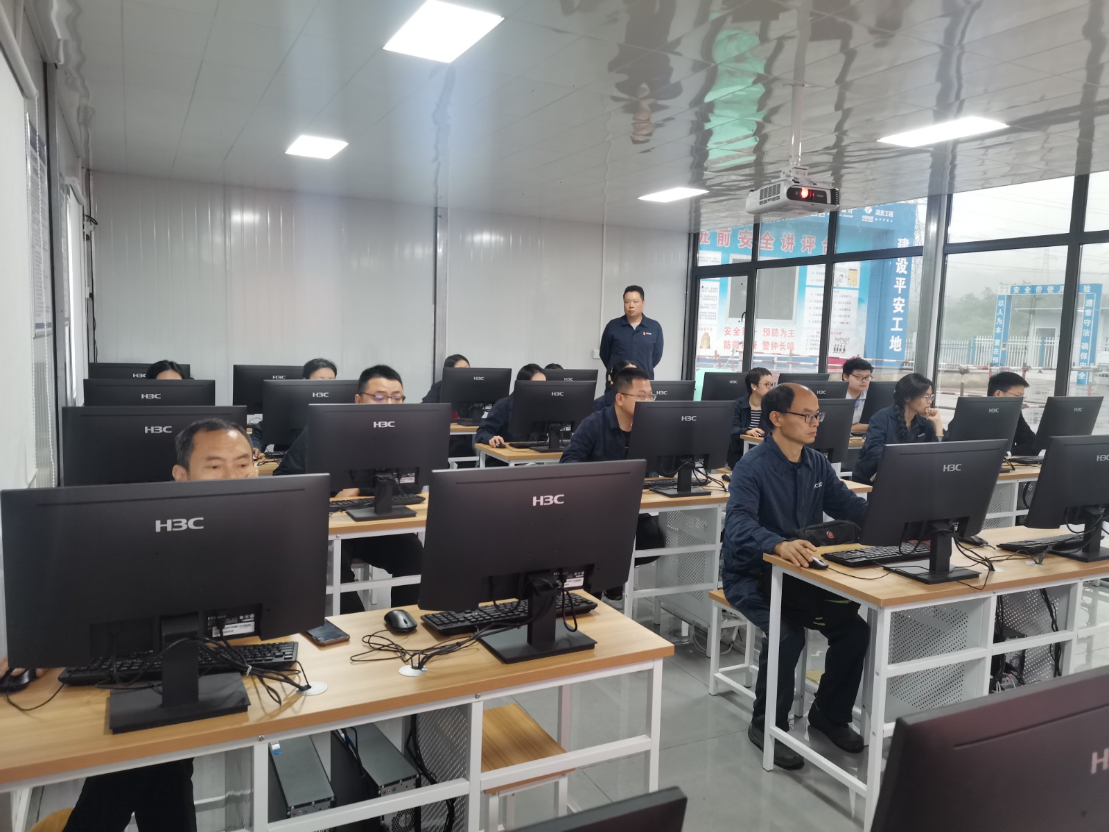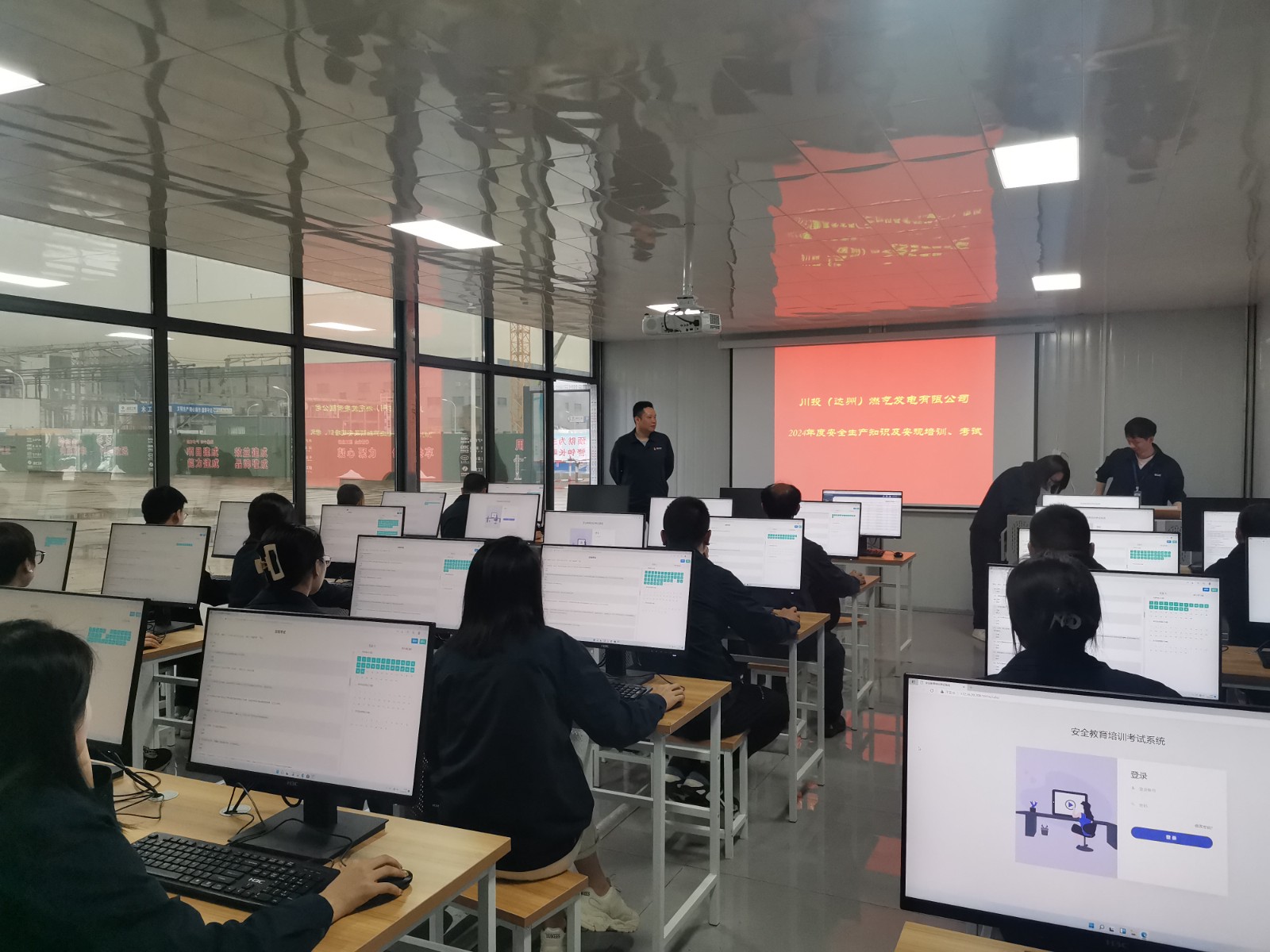 考试期间,公司安环部创新考试模式,将以往的纸质答卷改为电脑模拟考试模式,每位员工的考题由电脑在题库中随机抽取,考试现场实行单人单桌、全程监督、限时完成,答题结束后自动显示考试成绩,真正意义上确保考试过程公平、考试成绩公正,对全员安全知识水平和安全技能水平进行全面有效“体检”。
