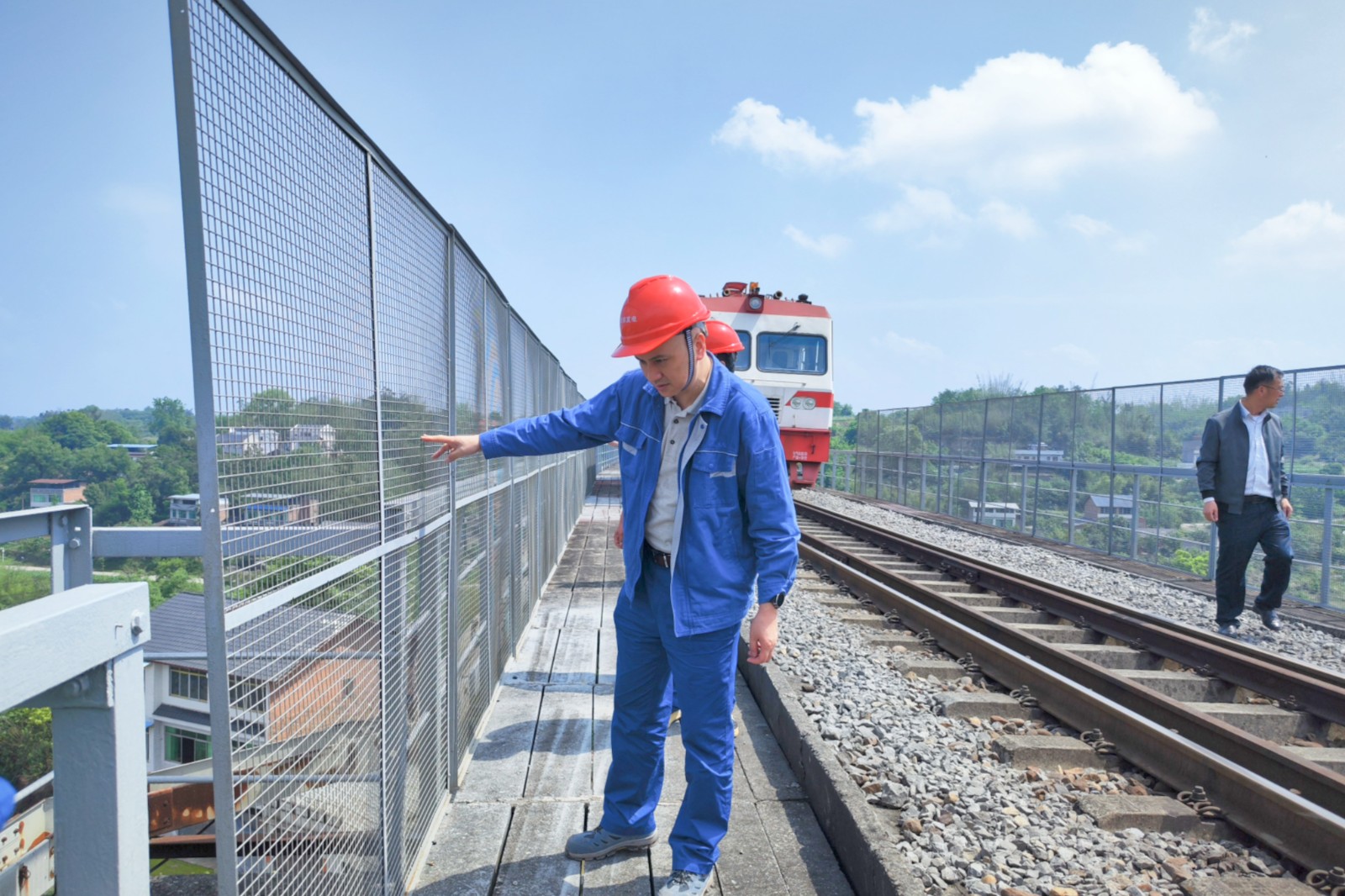 陈嵩首先检查了公司各部门春季安全大检查工作开展情况和防汛度夏相关工作准备情况。随后,陈嵩与川铁泸州公司总经理吴旭一同对半边山车站及方山车站的设备设施,公司铁路专用线沿线桥梁、隧道、边坡、排水沟及弃土场等相关区域进行了检查,并对存在的不足提出了整改要求。陈嵩强调,近期川南地区短时强降雨增多,防汛工作不可掉以轻心,公司各部门及相关单位要严格按照公司防汛工作要求,细化防汛措施,落实人员安排,开展防汛演练,认真做好抢险物资储备、工器具准备等各项工作,严格执行“雨前排查、雨中巡查、雨后核查”的要求,确保汛期铁路专用线的安全运营。